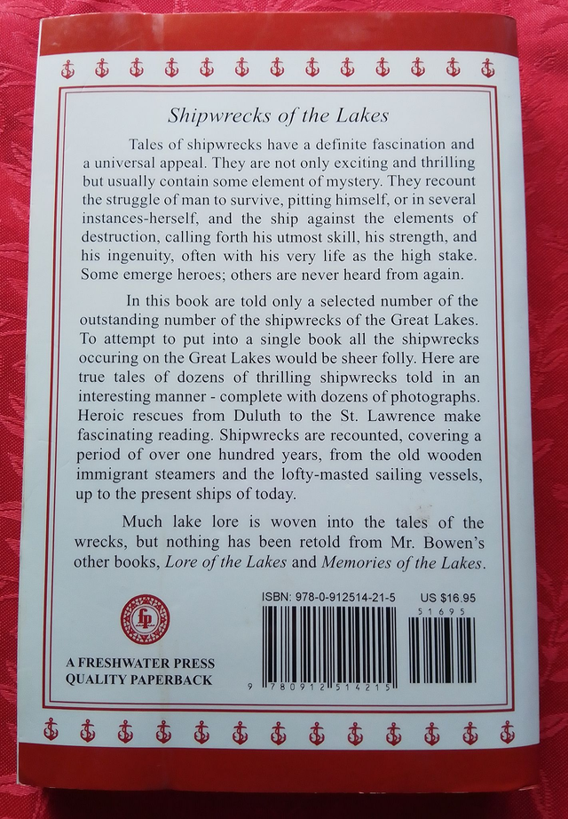 The book tells of a limited number of the vast number of shipwrecks that occurred in the Great Lakes. True tales of dozens of thrilling shipwrecks told in an interesting manner complete with many illustrations. Much lake lore is woven into the tales of the wrecks.